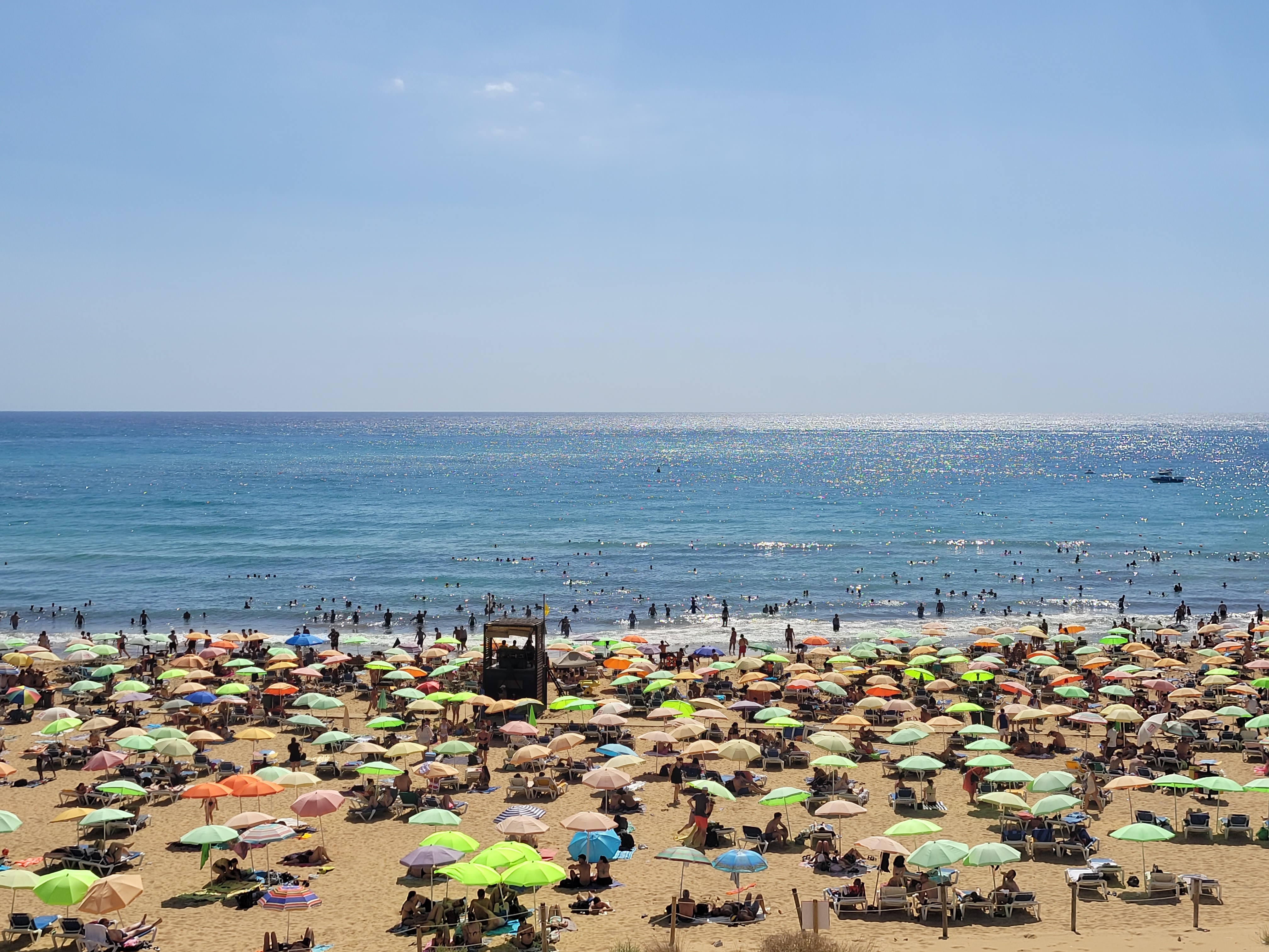 해변의 쫙 펼쳐진 피치 파라솔~~
