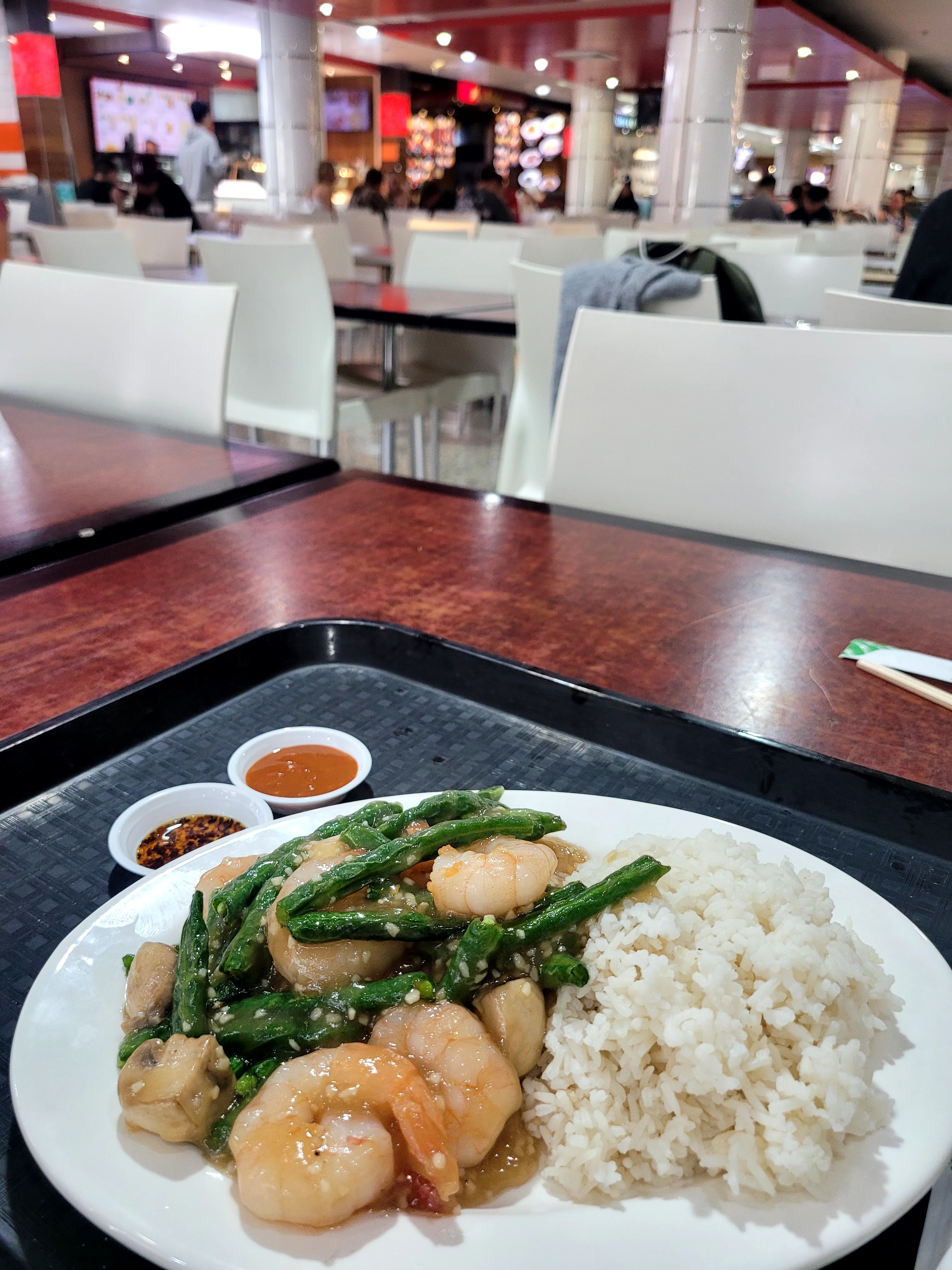 새우 덮밥을 맛나게 먹습니다.