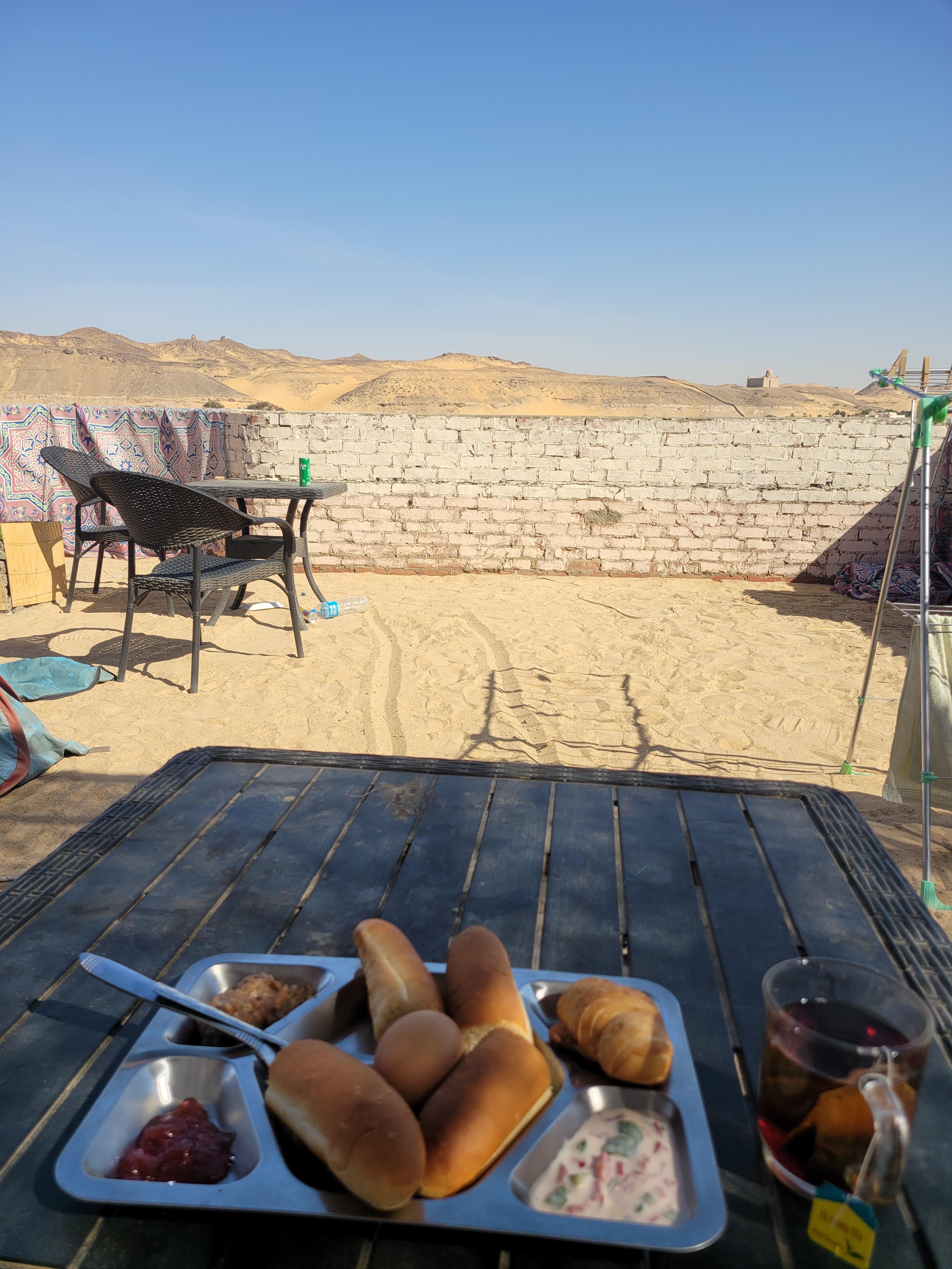 아침에 일어나서 조식을 줘서 조식을 들고 옥상으로 갔다.
